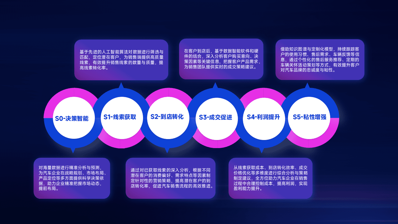 通过拓宽潜在客户来源、、优化线索分配并提高到店转化率,,,以增强销售效率。。同时,,,利用线索数据不断优化分析模型,,,有效提升转化率,,扩大营销影响力。。